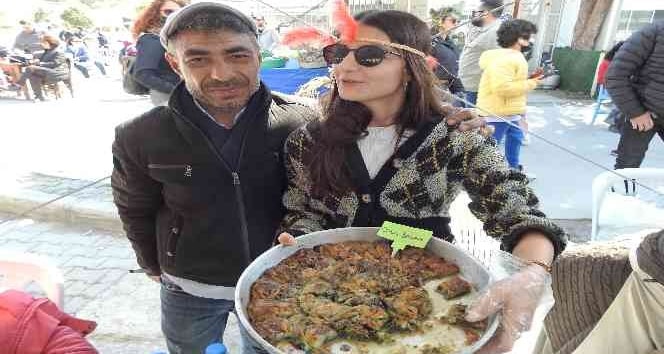 İzmir'de düzenlenen Alaçatı Ot Festivalinde yöreye özgü mahsullerden yapılan farklı mamuller beğeniye sunulurken, sakız özünden yapılan doğal antiseptik kolonya ve otlu baklava ilgi odağı oldu.