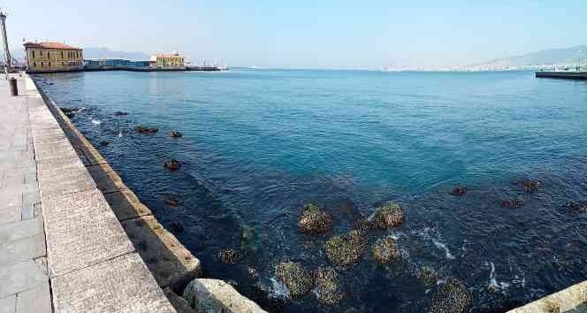 İzmir Körfezi'nde deniz seviyesi yaklaşık 80 santimetre çekilirken, su seviyesinin düşmesi nedeniyle deniz ulaşım