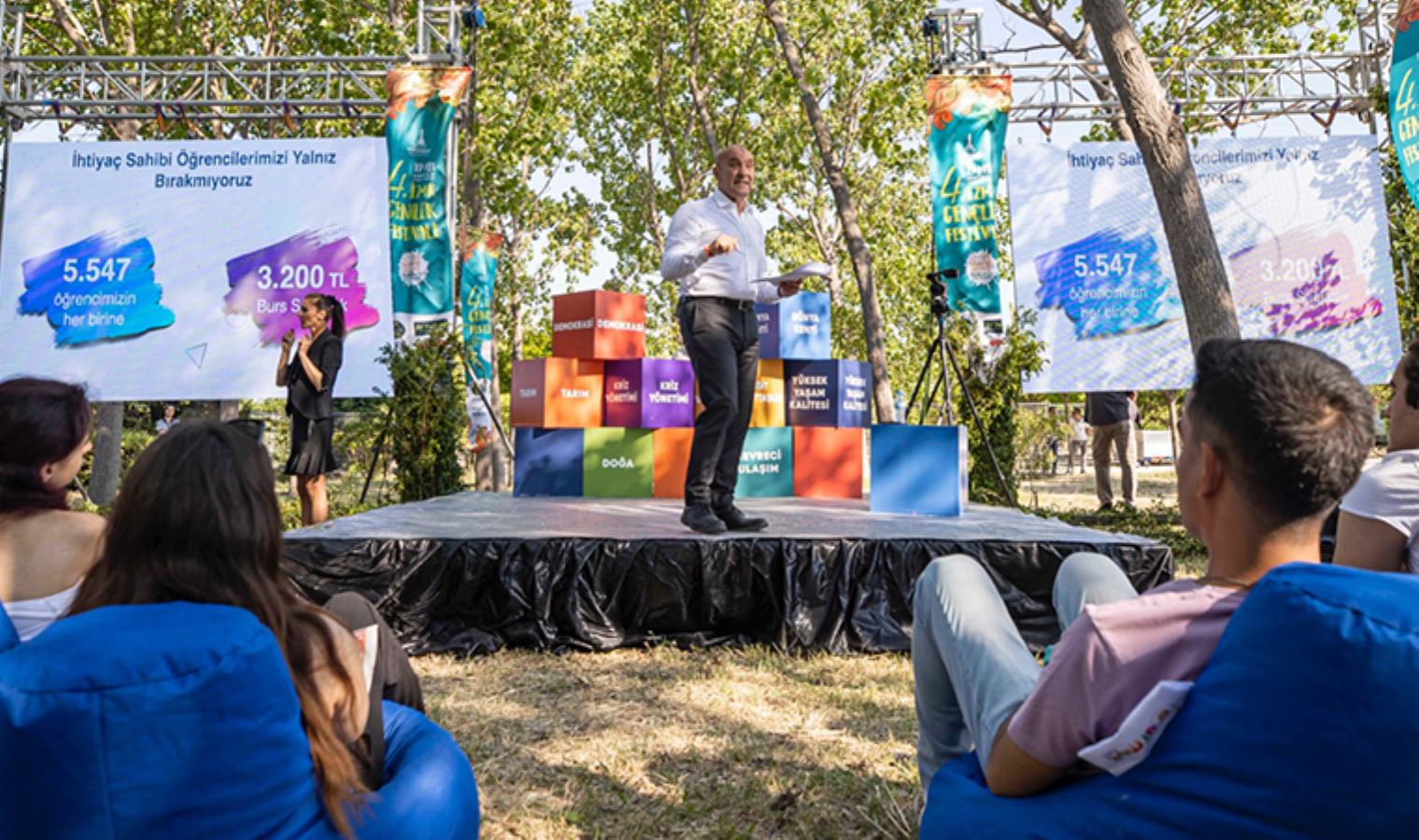 İzmir Büyükşehir Belediyesi Tunç Soyer İnciraltı Kent Ormanı’ndaki İzmir Gençlik Festivali’nde gençlerle ilgili projelerini açıkladı.