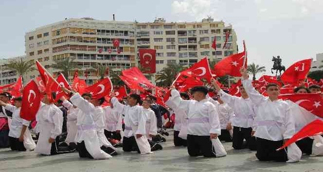 İzmir'de 23 Nisan Ulusal Egemenlik ve Çocuk Bayramı programları çerçevesinde Cumhuriyet Meydanı'nda yapılan resmi törene vatandaşların ilgisi yoğun oldu. Her yaştan öğrenci meydanda yoğunluk oluştururken meydanda yaklaşık bin 500 öğrenci sahne alıp bayraklar eşliğinde görsel bir şölen oluşturdu. Çocuk bayramını kutlamak için bir araya gelen çocuklar birbirinden renkli gösteriler sundu.