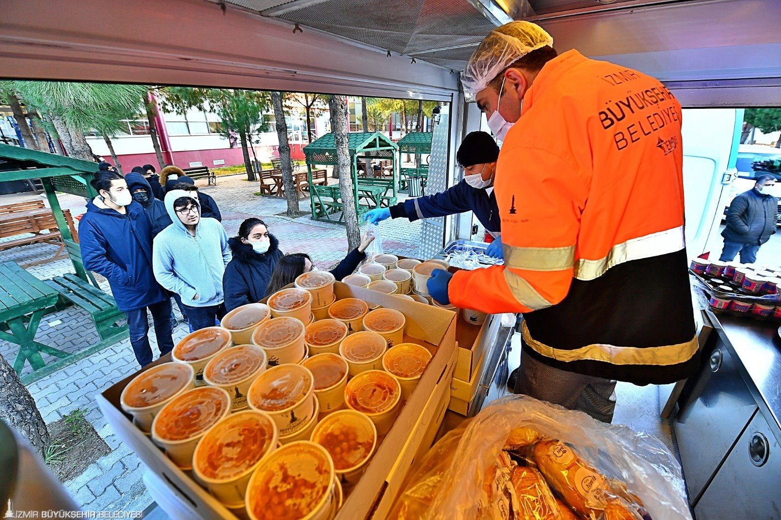 İzmir Büyükşehir Belediye Başkanı Tunç Soyer’in zorlu ekonomik süreçte üniversiteli gençlerin bütçesine destek olmak için başlattığı sıcak yemek desteği artık 6 noktada sunulacak. Ege Üniversitesi Kampüsü, Dokuz Eylül Üniversitesi Kampüsü, İ.Y.T.E Kampüsü, Kâtip Çelebi Üniversitesi Kampüsü için dün başlayan sıcak yemek hizmetine öğrencilerin talebiyle İzmir Demokrasi Üniversitesi ve Bakırçay Üniversitesi kampüsleri de eklendi. Sosyal Hizmetler Dairesi Başkanlığı tarafından sağlanan toplam 5 bin kişilik sıcak yemek hizmetinden öğrenciler 17.00 ile 19.00 saatleri arasında faydalanabiliyor.