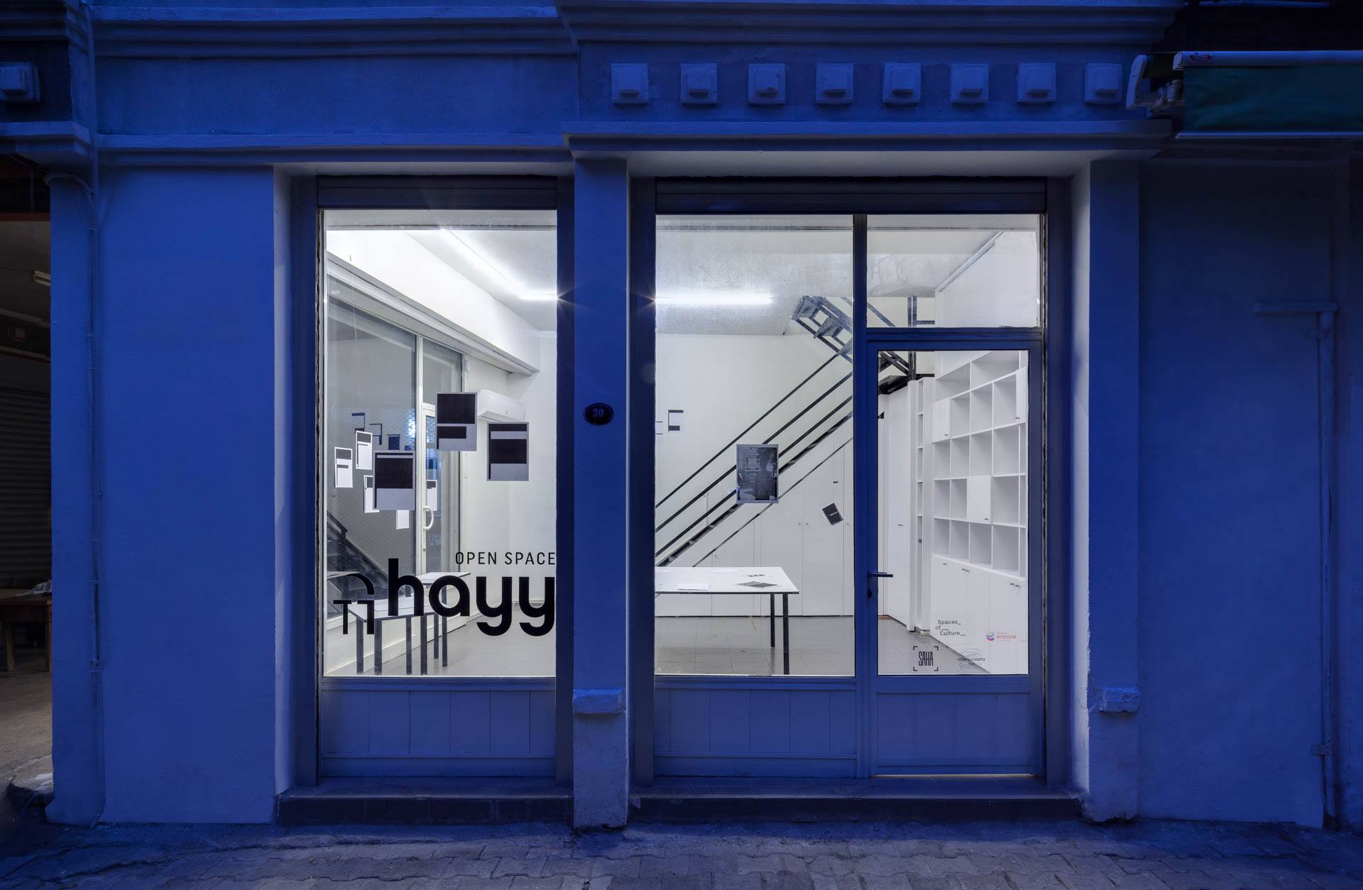 Hayy Açık Alan, İzmir’in tarihî dokusunu yansıtan Kemeraltı bölgesinde, Güzelyurt Mahallesi’nde yer alıyor. Tarihî bir binada hizmet veren mekân, dış cephesinde geleneksel mimariyi korurken iç mekânında modern ve sade bir tasarım sunuyor. Ziyaretçileri, girişte karşılayan sanat odaklı bir kütüphane mekâna özgün bir atmosfer katıyor.
